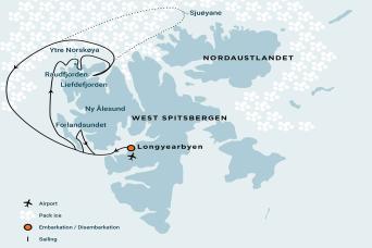 Voyage overview This expedition focuses on the pack ice of north Spitsbergen and many opportunities to spot whales, polar bears, seabirds, walruses, and other such wildlife. Day 1: Largest town, biggest island You touch down in Longyearbyen, the administrative center of Spitsbergen, the largest island of the Svalbard archipelago. Enjoy strolling around this former mining town, whose parish church and Svalbard Museum make for fascinating attractions. Though the countryside appears stark, more than a hundred species of plant have been recorded in it. In the early evening the ship sails out of Isfjorden, where you might spot the first minke whale of your voyage.Day 2-9: North Spitsbergen’s natural beauty, wildlife, and multi-day pack-iceThis voyage will take you into the pack ice and along the remote shorelines of rugged North Spitsbergen. Our landings are subject to change due to sea ice, weather conditions, and wildlife sightings. The expedition leader determines the final plan. Destinations you might visit include: Raudfjord On the north coast of Spitsbergen, you can enjoy this expansive fjord spilling with glaciers – and maybe even visited by ringed and bearded seals. The cliffs and shoreline at Hamiltonbukta support thriving seabird colonies with Brünnich's guillemots, rich vegetation, and the possibility of polar bears. We will try to land at Alicehamna or Buchananhalvøya. Ytre Norskøya This small island was used for many years as a lookout point for Dutch whalers, and in fact we can still follow their tracks to the summit of the island. The remains of 17th-century blubber ovens can also be, along with 200 graves. The north side of the island offers the rare opportunity to see puffins near their breeding places, and there is even a small colony of kittiwakes. Monaco Glacier Depending on the weather and sea ice, you could sail into Liefdefjorden, land at Texas Bar and cruise within sight of the 5-kilometer-long (3.1 miles) face of Monaco Glacier. The waters in front of this precipitous glacier are a favorite feeding spot for thousands of kittiwakes, and the base of the ice is a popular polar bear hunting ground. If ice conditions prevent us from sailing here early in the season, we can implement an alternate route along the west coast of Spitsbergen. The Seven Islands, Sjuøyane The northernmost point of the voyage may be north of Nordaustlandet, in the Seven Islands. Here we may reach 80° north, just 870 km (540 miles) from the geographic North Pole. At Phippsøya there is a walrus haul-out site, while Rossøya is the northernmost landmass in Spitsbergen. The vessel may sail deeper into the pack ice when wheeling around west again. Sailing in the pack ice We aim to sail into the pack ice at quite some distance from the coast of Spitsbergen, watching for polar bears and other animals at the edges of the pack. Our voyage through the pack ice may be a multi-day affair, depending on the position of the ice and local sea and weather conditions. Regardless of how long we spend in the ice, these days at sea will be a highlight of the trip. Note that while the ship navigates the pack ice, we will not make any shore landings or excursions from the ship. However, wildlife encounters are the main draw here, with good chances to encounter many species that thrive in this icy habitat, including polar bears, seals, and whales. After our time on the ice, we will retrace our route west, keeping watch for polar bears, ringed seals, and elusive Greenland (bowhead) whales. This is also the habitat of ivory gulls. About 40 nautical miles (74 km) west of Spitsbergen, we will sail along the edge of the continental shelf. Here, fin whales forage during the summer in the upwelling zones (where cold, nutrient-rich water wells up from below the sea’s surface) that run along the Spitsbergen banks. At the mouth of Kongsfjorden, you will have a good chance of sighting minke whales. Northwest of Raudfjord We aim to sail into the pack ice outside the territorial waters of Svalbard, watching for polar bears and elusive Greenland (bowhead) whales. As we sail from 80 N' to 76 N' along and in the outer fringes of the ice edge, we will also look for harp seals, hooded seals, polar bears, and migrating seabirds like little auks, Brünnich’s guillemots, and kittiwakes. On previous voyages in this area, we have sometimes seen up to hundred bowhead whales. We also have the chance to see northern bottlenose whales and the first fin whales of the season. The pack ice sailing will be a highlight of this voyage and may take up to three days. Forlandsundet wildlife Walruses sometimes haul out in Forlandsundet, at Poolepynten. But if we cannot go there, we might sail to the mouth of Isfjorden, where we may see different species of rorqual whales. Our intended landing site is Alkhornet, where seabirds nest on the cliffs, Arctic foxes search below for fallen eggs and chicks, and reindeer graze the sparse vegetation. Another possibility is the glacier front in Ymerbukta, where you can see congregations of various eider species. Day 10: Longyearbyen - There and back again Even great adventures must eventually come to an end. The vessel arrives back in Longyearbyen in the early morning, and bus transportation to the airport will be provided. PLEASE NOTE: All itineraries are for guidance only. Programs may vary depending on ice, weather, and wildlife conditions. Landings are subject to site availabilities, permissions, and environmental concerns per AECO regulations. Official sailing plans and landing slots are scheduled with AECO prior to the start of the season, but the expedition leader determines the final plan. Flexibility is paramount for expedition cruises. The average cruising speed of our vessel is 10.5 knots.Vessel
