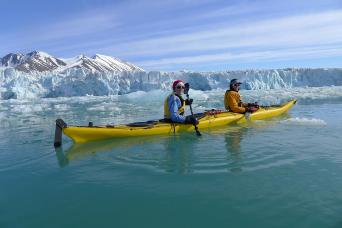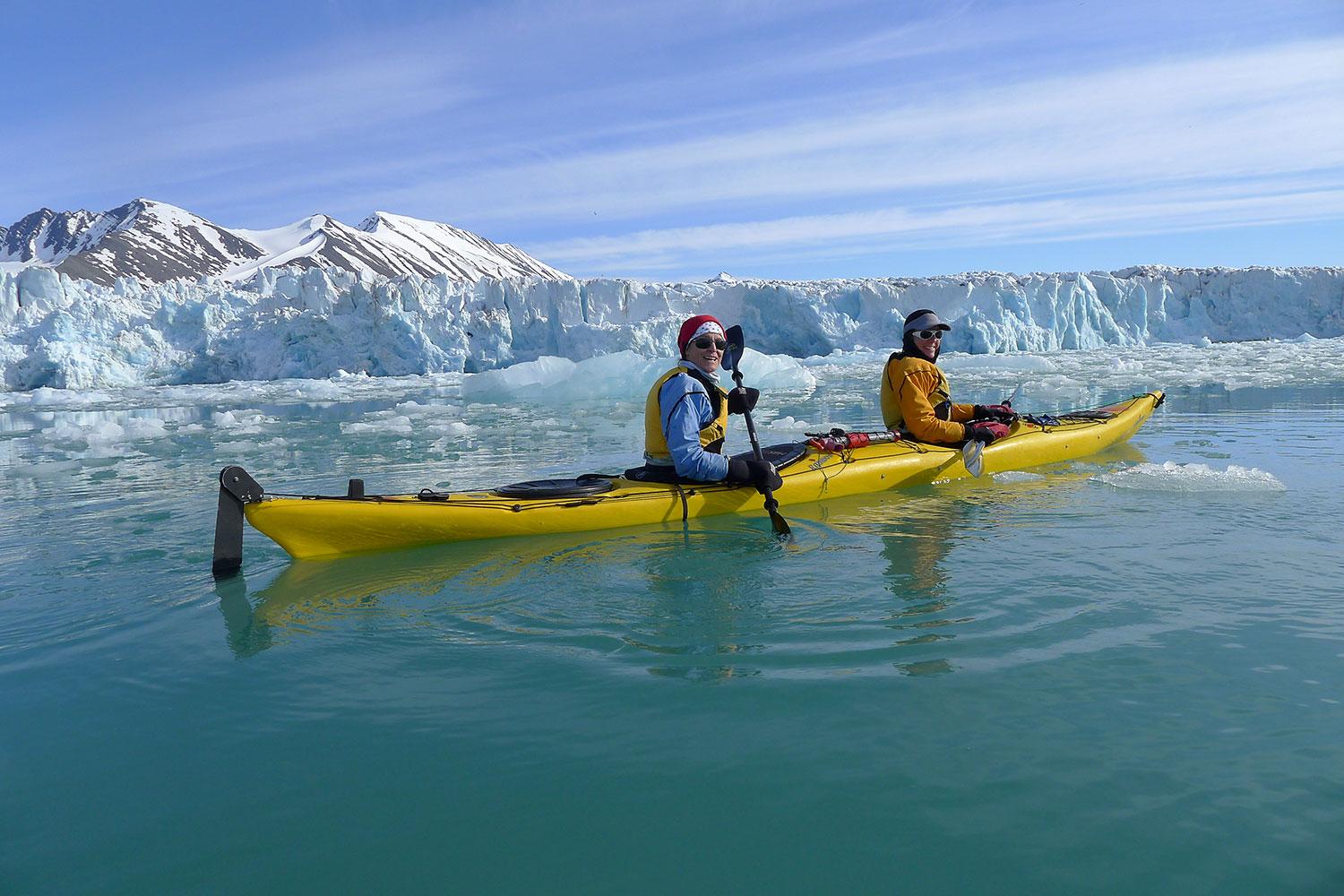 Selected departures may include an option for Sea Kayaking – contact us for availability! Sea kayaking on a polar expedition brings you face-to-face with the polar wilderness from a unique, water-level vantage. Glide silently among icebergs and beside glaciers, drift past curious birds or seals, and explore remote fjords and coastline not accessible by ships. Kayaking becomes a deeply immersive, sensory experience—crisp air, icy water, wildlife calls and the hush of untouched nature. Guided by expert polar staff, you paddle safely in small groups, often with Zodiac support close by. Whether you choose a single paddle outing or a full kayak program, this adventure gives you an intimate connection with polar landscapes few ever experience. >>Read More Details on this information page!