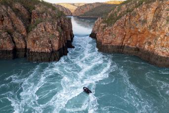 At Talbot Bay experience the power of the region’s massive tidal movements and the world’s only Horizontal Falls, described by David Attenborough as “one of the greatest wonders of the natural world”.