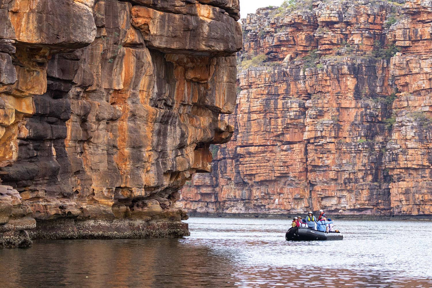 A luxury cruise from Darwin to discover Australia’s remote Kimberley Coast — red cliffs, waterfalls, Aboriginal rock art and wildlife